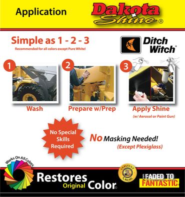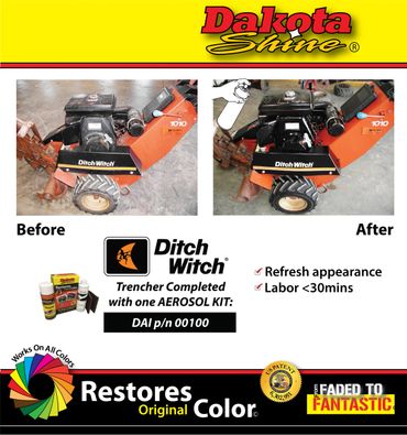 A message from Ditch Witch Corporate, "...We believe this is a great product and has its purpose for you as dealer to assist in refurbishing equipment and there are several Dealers who utilize this product regularly... Dakota AG Innovations offers not only Dakota Shine but other products to fulfill different needs for you at your dealerships." - Tyler Schwandt, Product Manager